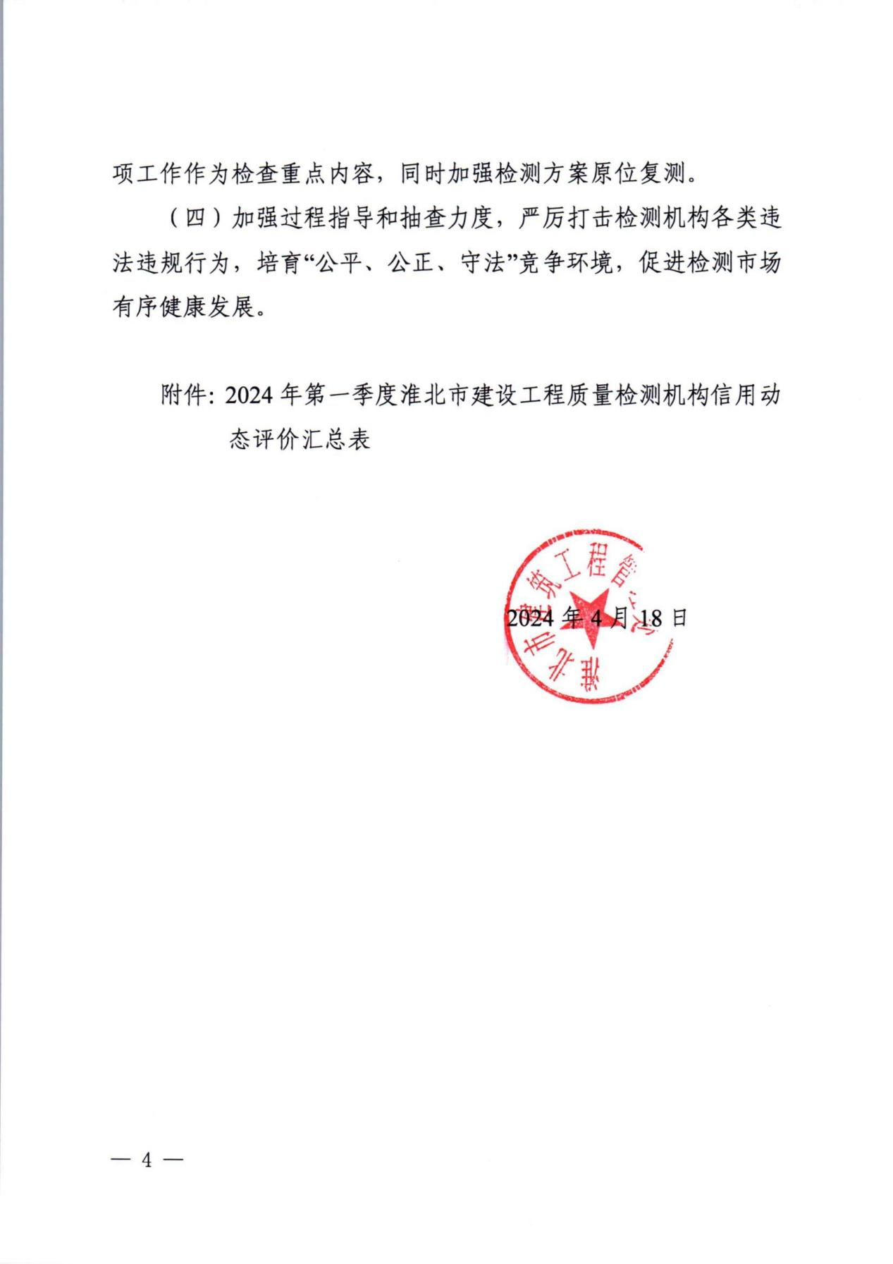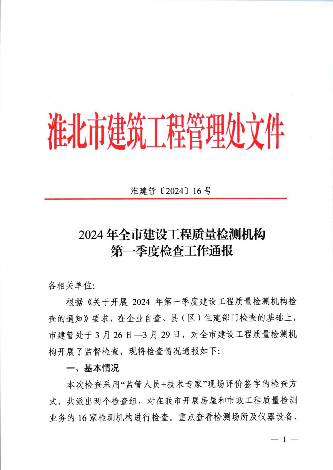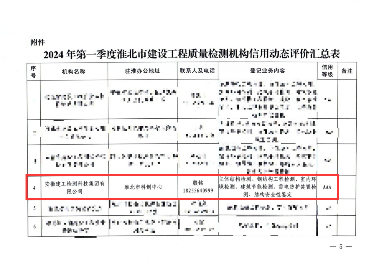 4月18日,淮北市住建局建設(shè)工程管理處公布了淮北市建設(shè)工程質(zhì)量檢測機構(gòu)第一季度監(jiān)督檢查結(jié)果,安徽建工檢測科技集團獲得“AAA”級(最高等級)信用評價,這說明建工檢測在淮北的技術(shù)力量和檢測成績得到了主管部門高度的肯定和認可。