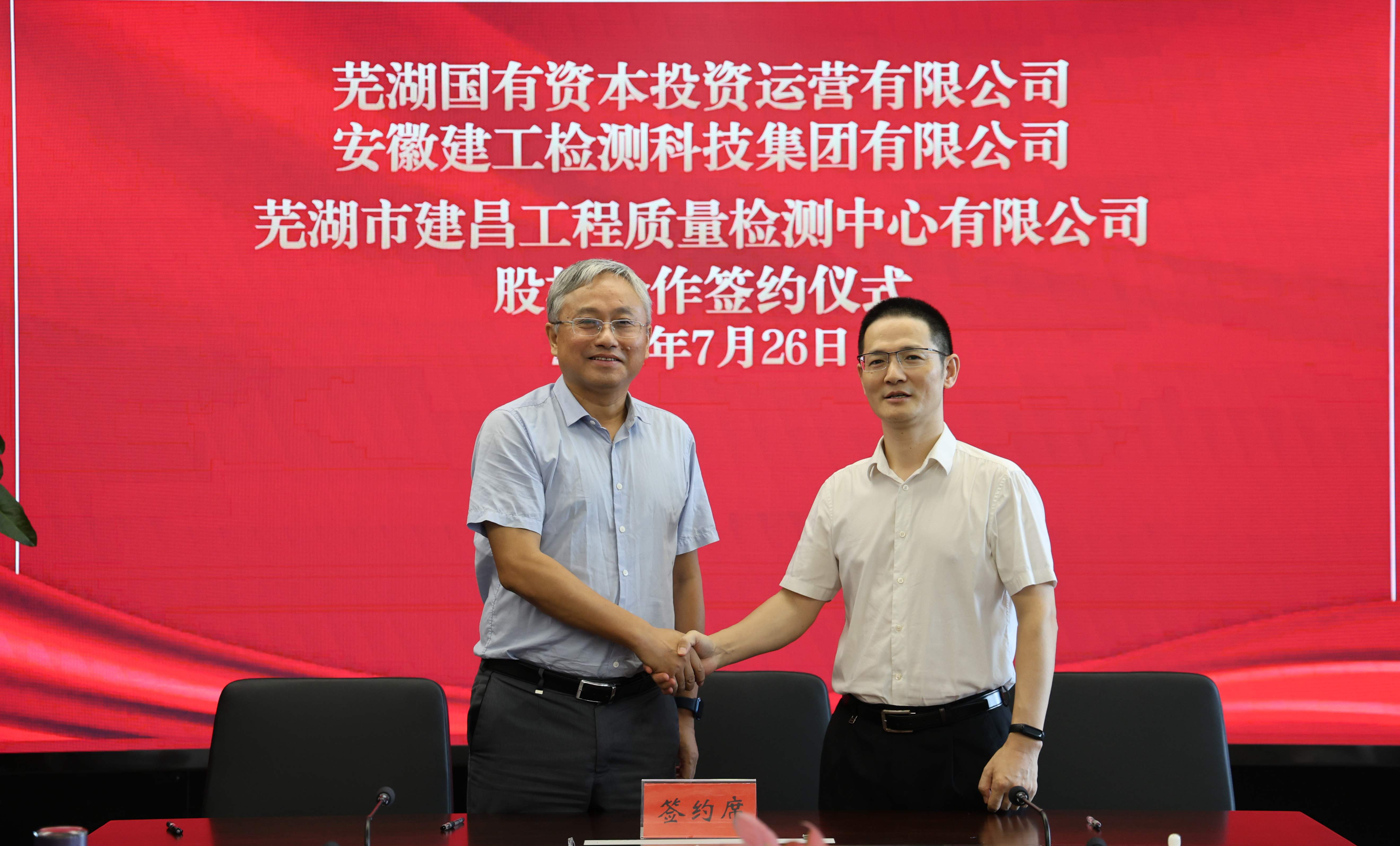 7月26日上午,安徽建工檢測科技集團有限公司(以下簡稱“建工檢測”)與蕪湖國有資本投資運營有限公司(以下簡稱“蕪湖國投”)及蕪湖建昌工程質量檢測中心有限公司(以下簡稱“蕪湖建昌”)在建工檢測共同簽署了股權合作協(xié)議。