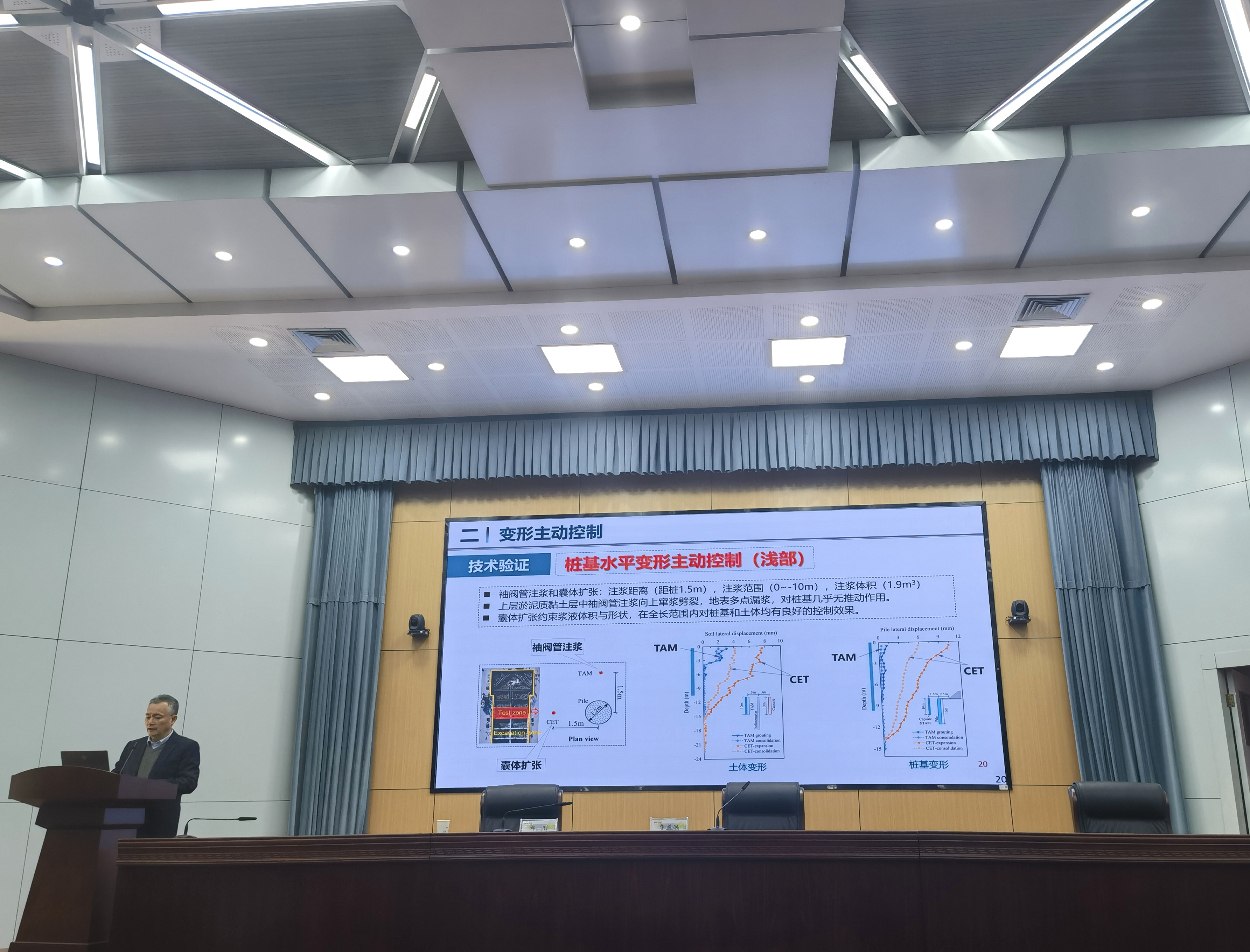 鄭剛教授在報告中指出,傳統(tǒng)的被動變形控制方法難以滿足軟土地區(qū)交通基礎(chǔ)設(shè)施在鄰近施工擾動下的毫米級微小變形控制要求。針對這一難題,科研團隊提出了軟變形主動控制理論及關(guān)鍵技術(shù),實現(xiàn)了“微小變形可控、超標變形可糾”,有效保障了軟土地區(qū)已服役交通基礎(chǔ)設(shè)施的正常使用和安全穩(wěn)定。同時,針對軟土工程整體性較低、局部破壞易引發(fā)連續(xù)大變形等行業(yè)痛點,建立了整體安全性能控制理論及高效優(yōu)化方法,為復(fù)雜地基工程的長期安全提供了技術(shù)支撐。