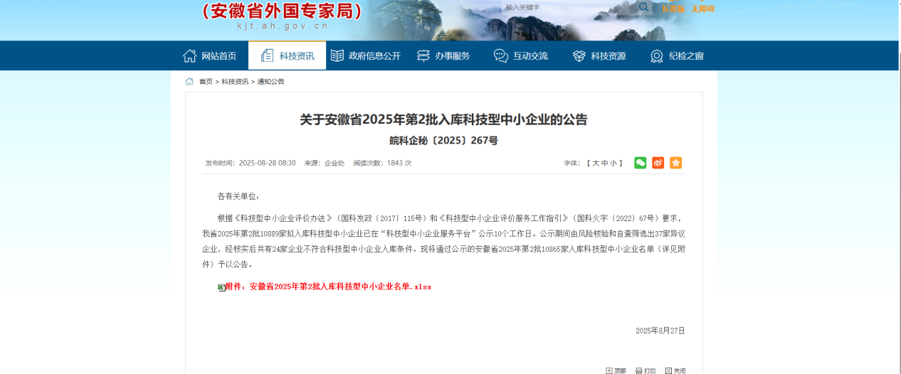 近日,安徽省科學(xué)技術(shù)廳公布2025年第二批入庫科技型中小企業(yè)名單,安徽天筑智檢信息技術(shù)有限公司再度入選,連續(xù)兩年獲此認(rèn)證,標(biāo)志著省級科技管理部門對天筑智檢自主創(chuàng)新能力、技術(shù)研發(fā)活力及發(fā)展?jié)摿Φ母叨日J(rèn)可。