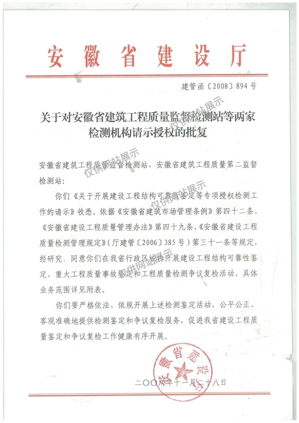 “可靠性鑒定、重大工程質(zhì)量事故鑒定、工程質(zhì)量檢測(cè)爭(zhēng)議復(fù)檢”專項(xiàng)授權(quán)