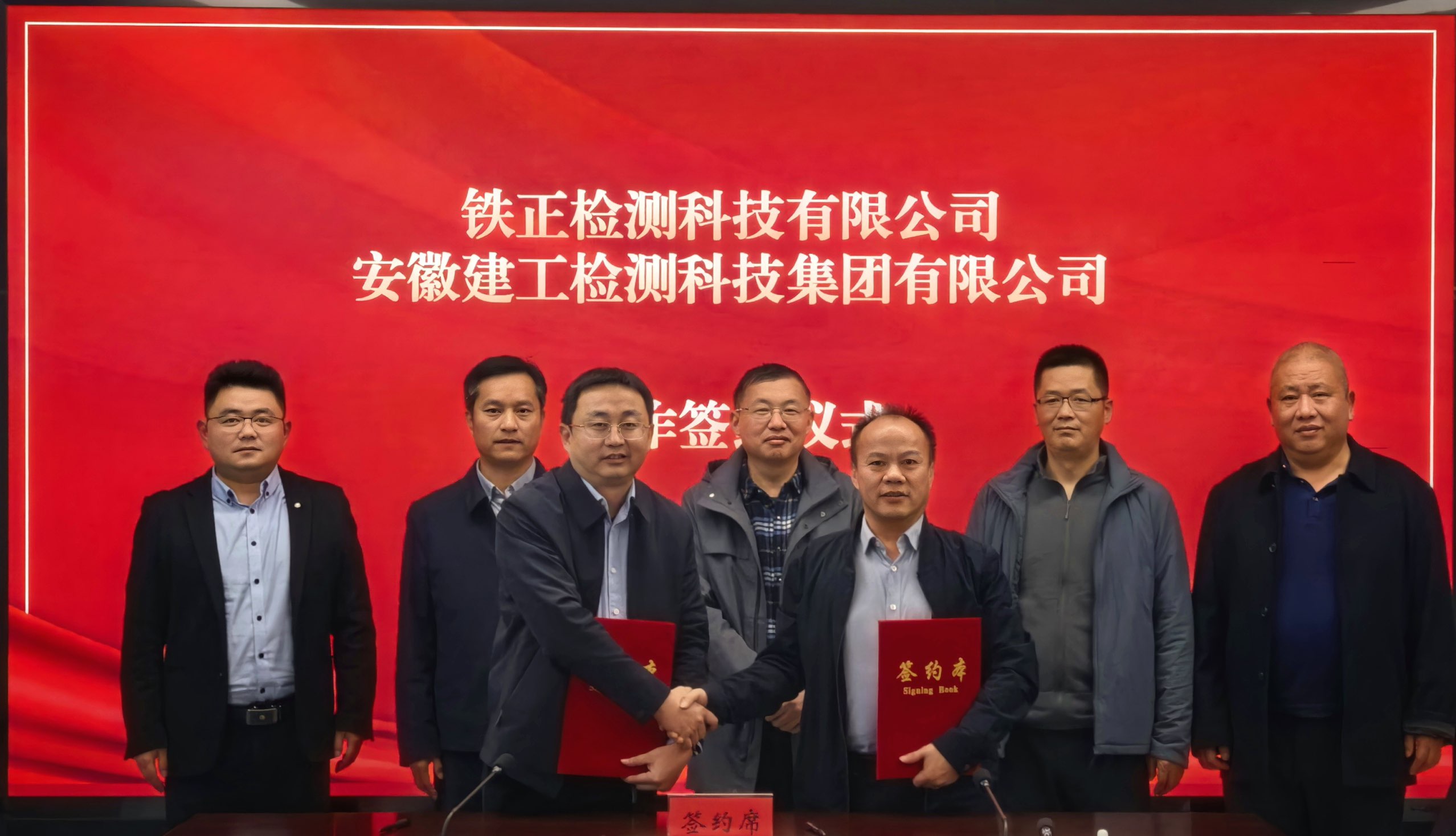 12月10日下午,鐵正檢測科技有限公司黨委副書記、總經(jīng)理蘇磊一行到訪建工檢測公司,雙方就項目合作、科研攻關、新技術推廣及人才培育等領域展開深入交流,并現(xiàn)場舉行合作簽約儀式。